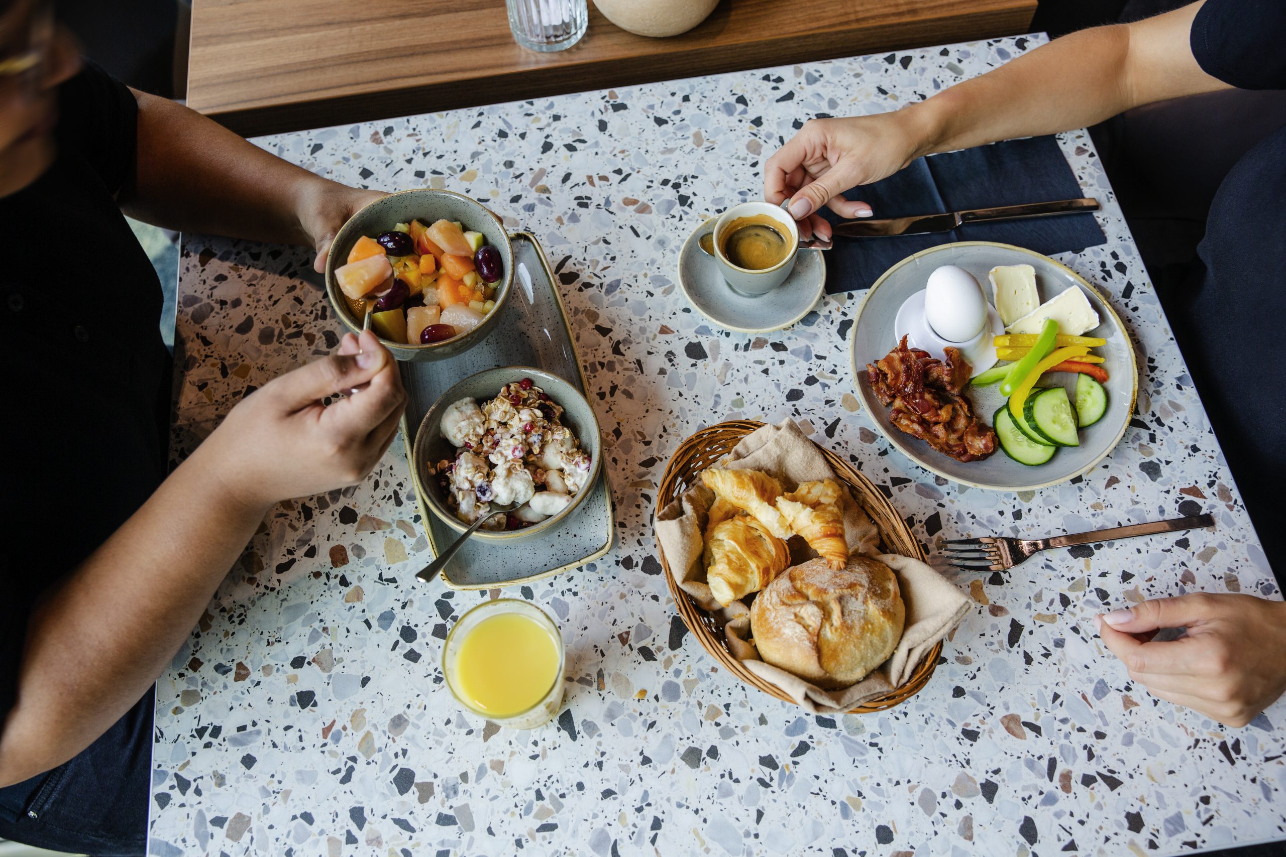Der Morgen startet bei uns mit starken Basics. Brot vom Bäcker Baier, Aufschnitt aus der Region und eine DIY Müslistation, die wirklich Spaß macht. Klar präsentiert, frisch und ohne Schnickschnack. Kaffee steht den ganzen Tag bereit, weil gute Ideen selten nur morgens kommen.